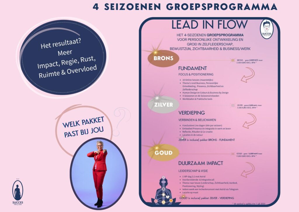Namelijk het gloednieuwe 4-seizoenen groepsprogramma “Lead in Flow”.